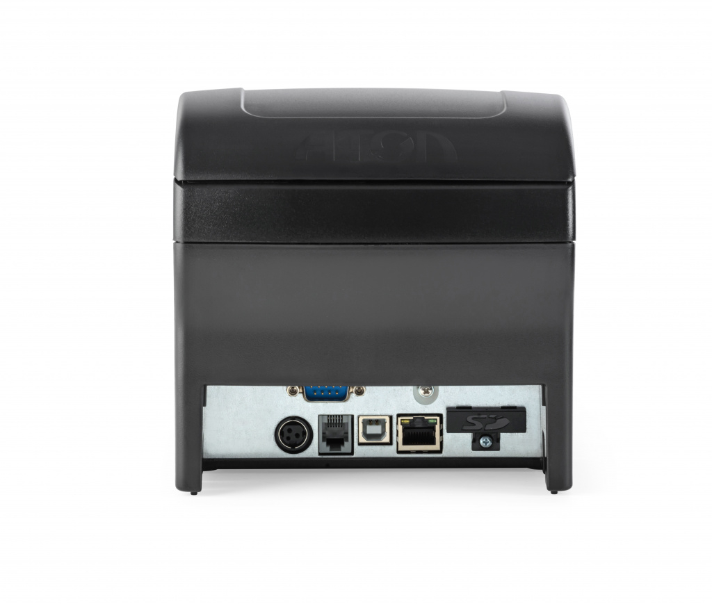 - Защищенная конструкция для сложных условий. Горизонтальная выдача чека и продуманная геометрия корпуса минимизируют риск попадания жидкости, жира и мелкого мусора в печатный механизм, что особенно важно для предприятий общественного питания.