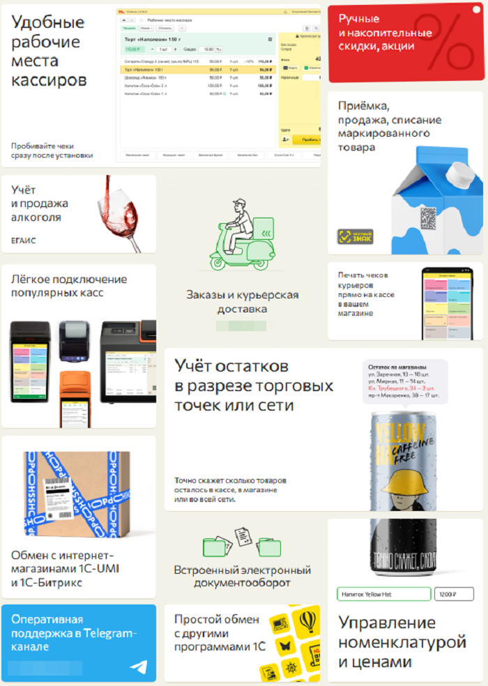 1С Касса создано специально для малого розничного бизнеса как самое простое решение начального уровня для автоматизации торговли и ведения товарного учёта.