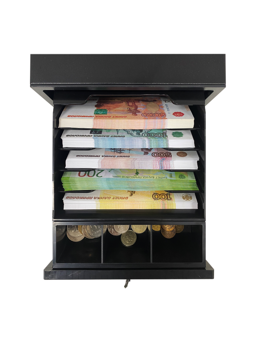 Работает без подключения к кассовому аппарату. Этот формат железного ящика с ключом, будет удобен для малого бизнеса: островная торговля в торговых центрах, палатки и ларьки, небольшие павильоны и прочие торговые точки, имеющие ограниченное рабочее пространство для установки кассовой техники.